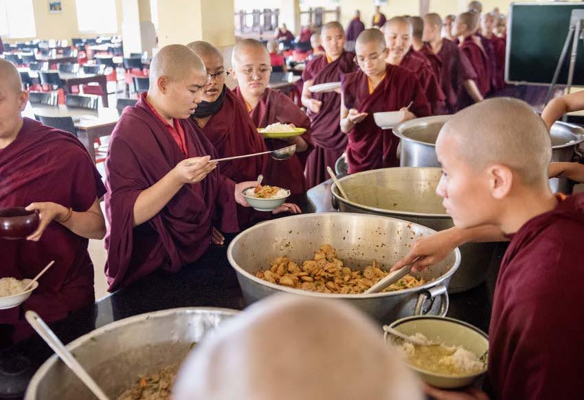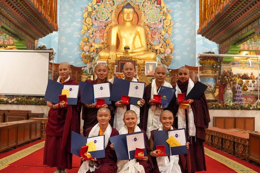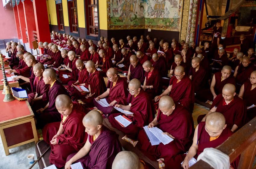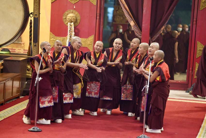 The opening day began at the Mahabodhi Stupa, where the nuns took the Mahayana Sojong vows and made traditional offerings. This was followed by an official opening ceremony at Tergar Monastery. During the program, the nuns received teachings from His Holiness the Gyalwang Karmapa, studied Buddhist philosophy using specially prepared textbooks, practiced debate, participated in debate competitions, and performed various pujas.